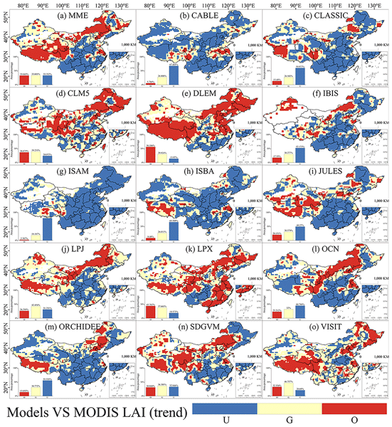 Evaluating dynamic global vegetation models in China: challenges in capturing trends in leaf area and gross primary productivity