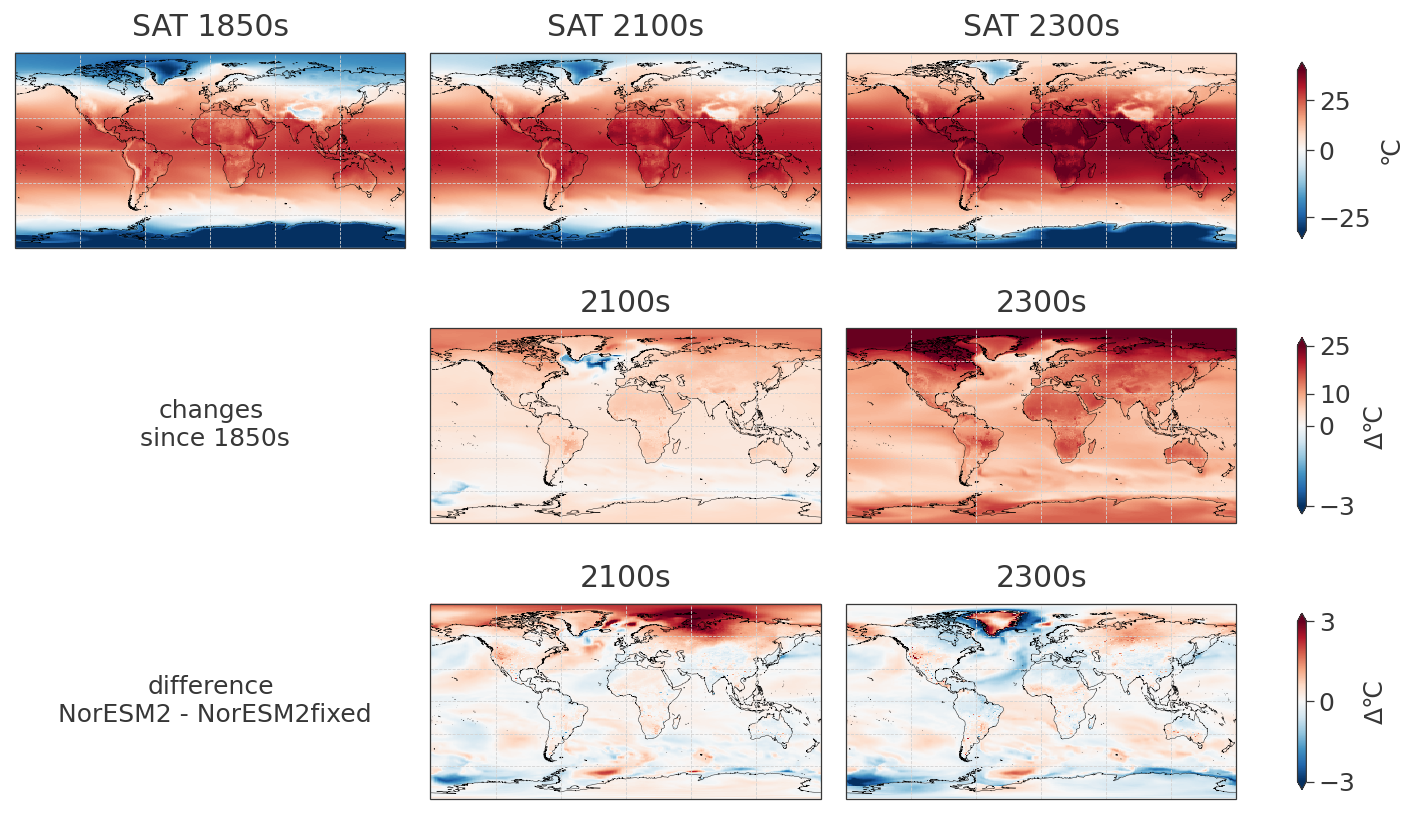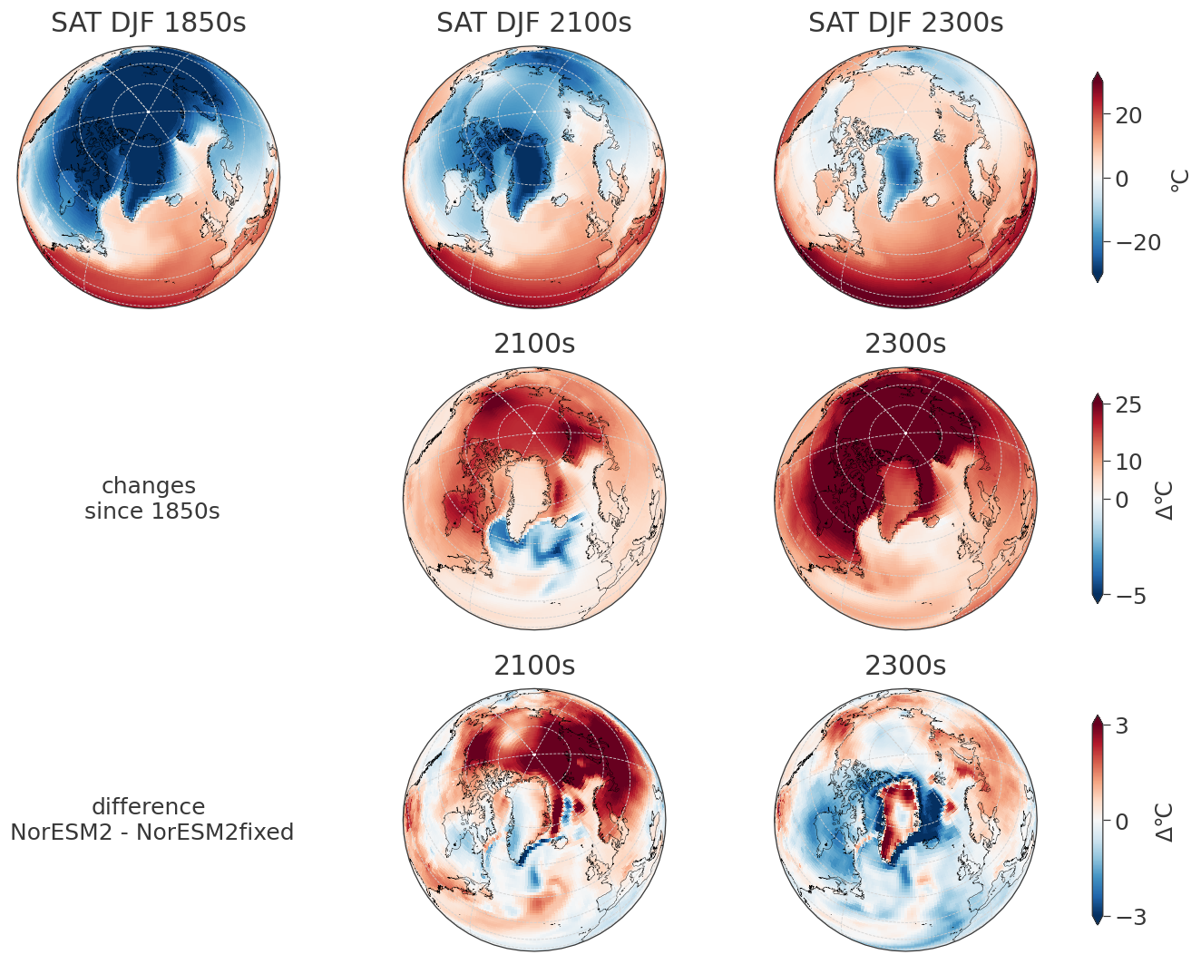 We thank Michele Petrini, Miren Vizcaino, Ina Nagler, Aleksi Nummelin and KeyCLIM project participants for discussions and suggestions that supported the analysis of the simulations. High-performance computing and storage resources were provided by Sigma2 – the National Infrastructure for High Performance Computing and Data Storage in Norway through projects NN9560K, NN9252K, NN2345K, NN8006K, NS9560K, NS9252K, NS2345K, NS9034K and NS8006K. Analysis and figures were done in a Python 3.9 environment with packages including numpy, xarray, netCDF4, matplotlib and cartopy. We thank the Norwegian Climate Centre for providing NorESM2 data for CMIP6 and the Earth System Grid Federation (ESGF) for archiving the CMIP data and providing access.